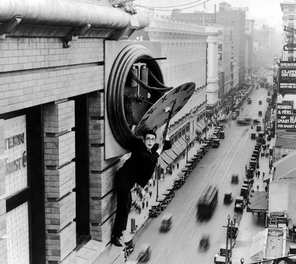 On Saturday, January 31st, at 7:00 pm, Vivo will be performing to the same film at St. John’s Lutheran Church, 600 6th Ave, Des Moines. The performance is free, although the church will ask for a free-will donation. Reservations are not required. Harold Lloyd was one of the more famous silent film stars — and the highest paid — during the 1920’s. He was considered to be the first screen actor to use physical danger as a source of laughter. His comedic stunts rivaled those of Buster Keaton. In Safety Last!, Harold Lloyd plays an ambitious young sales clerk who wants to impress his boss with a spectacular stunt to bring more costumers to the department store. He enlists the help of his friend (Bill Strother), a high-heights worker, who is always ready for an adventure. This adventure does not unfold according to plan. Join us to discover how Harold gets himself out of this mess!