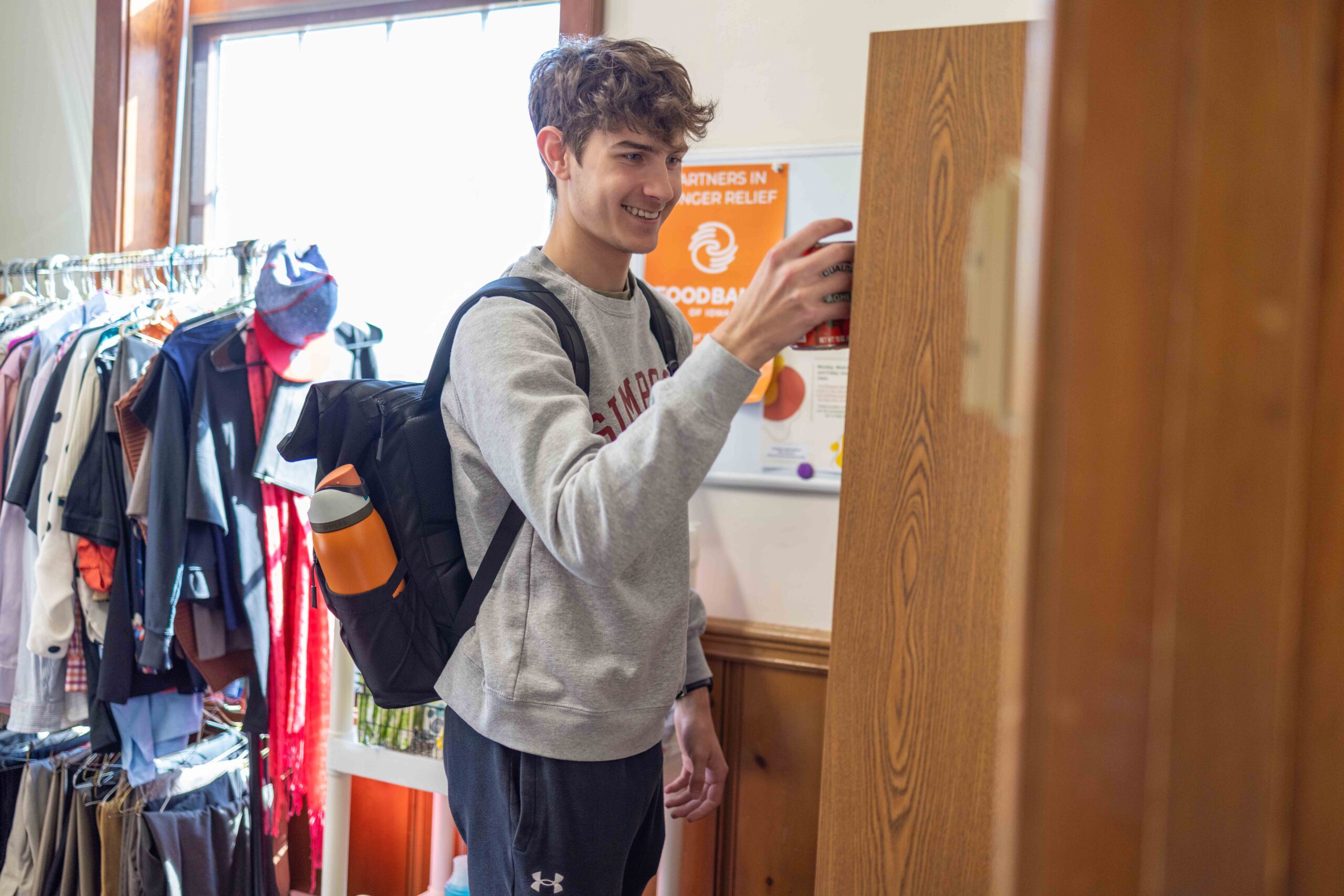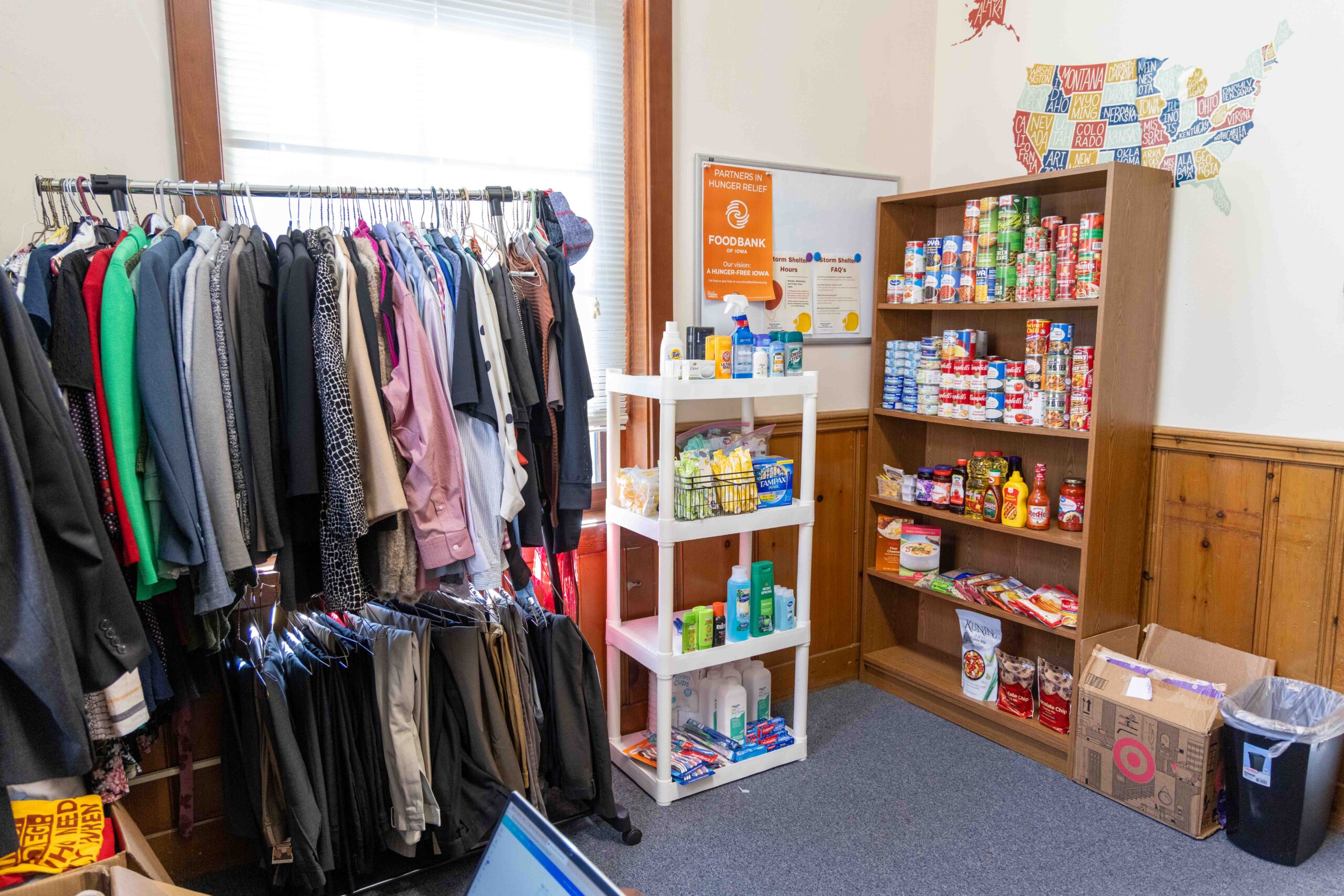 The Simpson Storm Shelter is home to the campus food co-op and clothing closet, located on the first floor of Kresge Hall. We are a proud partner of the Food Bank of Iowa! The hours of operation are Monday, Wednesday and Friday from 10am-12pm. Visits outside of these hours can be scheduled by reaching out to Ellie Blosser, AmeriCorps Service & Community Engagement Coordinator, via email ellie.blosser@simpson.edu.